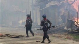 မီး႐ိႈ႕ခံခဲ့ရ သည့္အတြက္ ရဲတပ္ဖြဲ႕မ်ားက ေသနတ္ပစ္ေဖာက္ ဟန္႔တားခဲ့ရသည္။